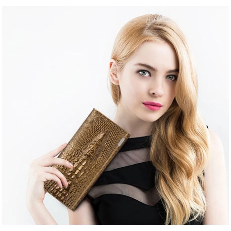 Unbranded Womens Ladies Genuine Leather Wallet Long Embossing Bifold Wallet Clutch Purse - Blue