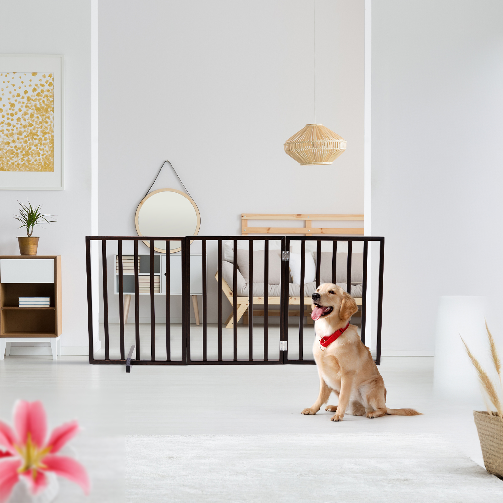Discover the elegance and functionality of our Freestanding Wood Pet Gate, the perfect solution for blocking stairs and restricting your dog's access to other areas of your home. Whether it's entryways, stairs, doorways, entrances, or hallways, this pet gate works like a charm.