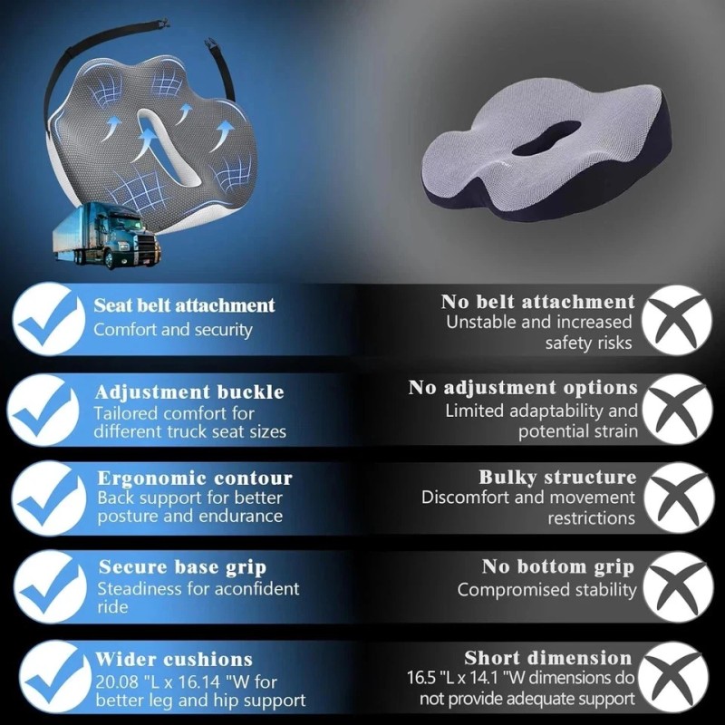 Long hours on the road or at the office can cause serious back pain and fatigue. Our X-Large Seat Cushion for Truck Drivers is specially designed to provide superior comfort, pressure relief, and ergonomic back support, making it the perfect companion for truckers, office workers, gamers, and travelers.