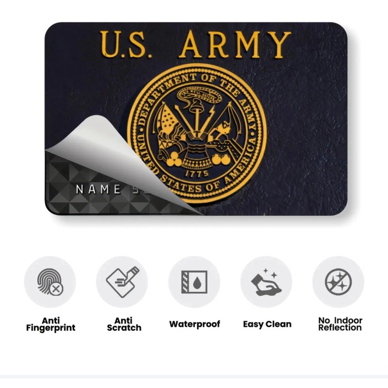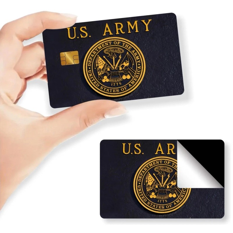 UNITED STATES U . S. ARMY CREDIT DEBIT CARD SKIN STICKERS LOT x2. Gold and Black color. 1 set of 2 thickened frosted credit card stickers. Suitable for credit cards, bank cards, debit cards, bus cards, removable self-adhesive decorative card stickers, scratch-proof, stain-proof, personalized decorative stickers. EXCELLENT CRISP SKIN SET. GO USA!!! GO ARMY! Free ship. Multibuy discount. Questions welcome!🇺🇸🇺🇸🇺🇸🇺🇸🇺🇸