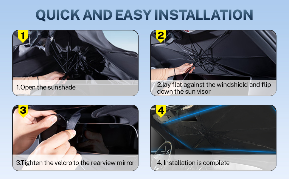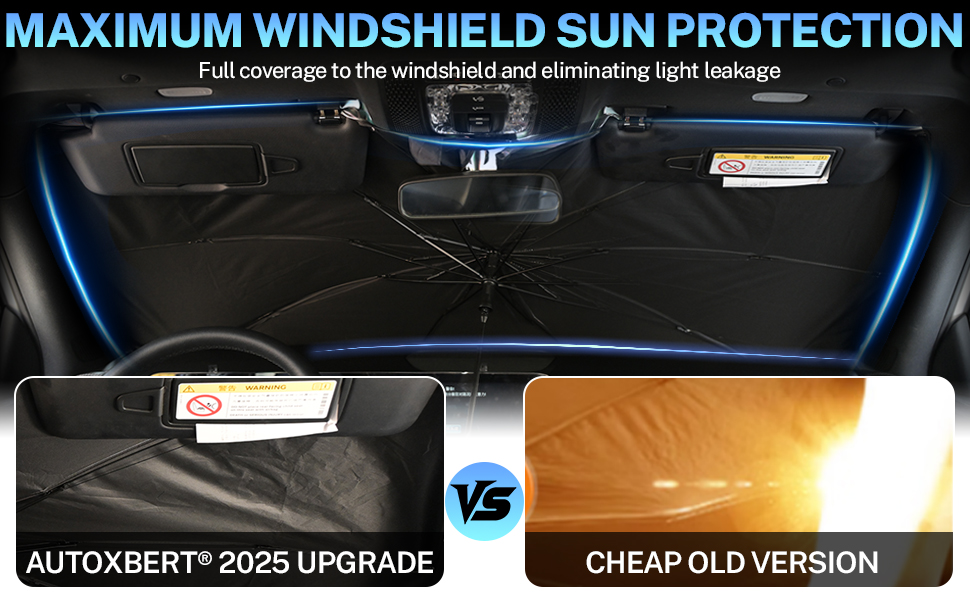 [High-quality material and durable design]: this umbrella from AUTOXBERT is made of silver-coated cloth and black steel rods. These materials ensure the reliability and durability of the sunshade umbrellas. The silver coating and black backing efficiently protect the interior of your car from UV rays and sun glare, lowering the temperature inside the car and keeping you comfortable.