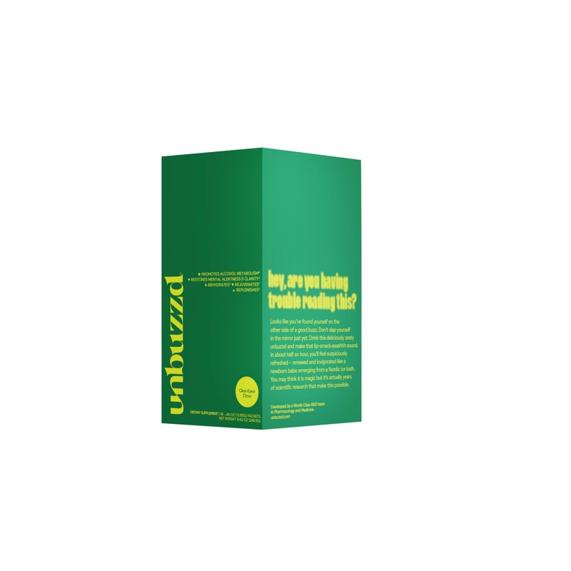 unbuzzd Clear-Eyed Citrus | 18 Powder Sticks | Great Tasting Post Drinking Support | DHM (Dihydromyricetin), Electrolytes, Vitamins, Milk Thistle | Metabolism, Alertness, Rapid Hydration