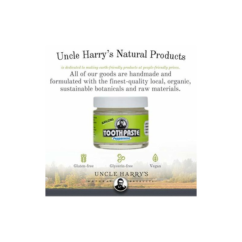 • An all natural toothpaste that eliminates bad breath with exotic spiced anise and refreshes your mouth with mineral clays, sea salt, and pure plant essences all day long. Uncle Harry's Natural Tooth Paste Products come packaged in an Earth-friendly, zero waste glass jar that’s been labeled by hand.