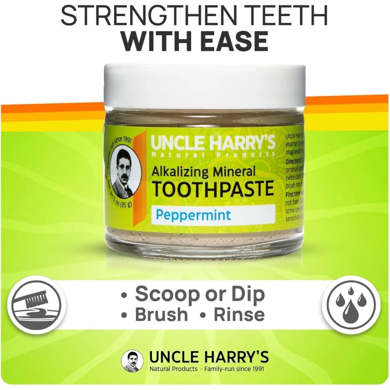 - STRENGTHEN TEETH - Save your teeth and gums with Uncle Harry's remineralizing toothpaste formula. It encourages healthier tooth enamel by nourishing teeth with calcium, magnesium, and phosphorus. It also helps maintain a naturally alkaline pH that is best for oral health and dental hygiene.