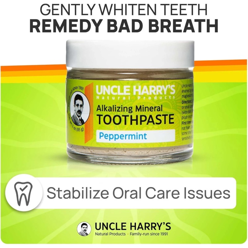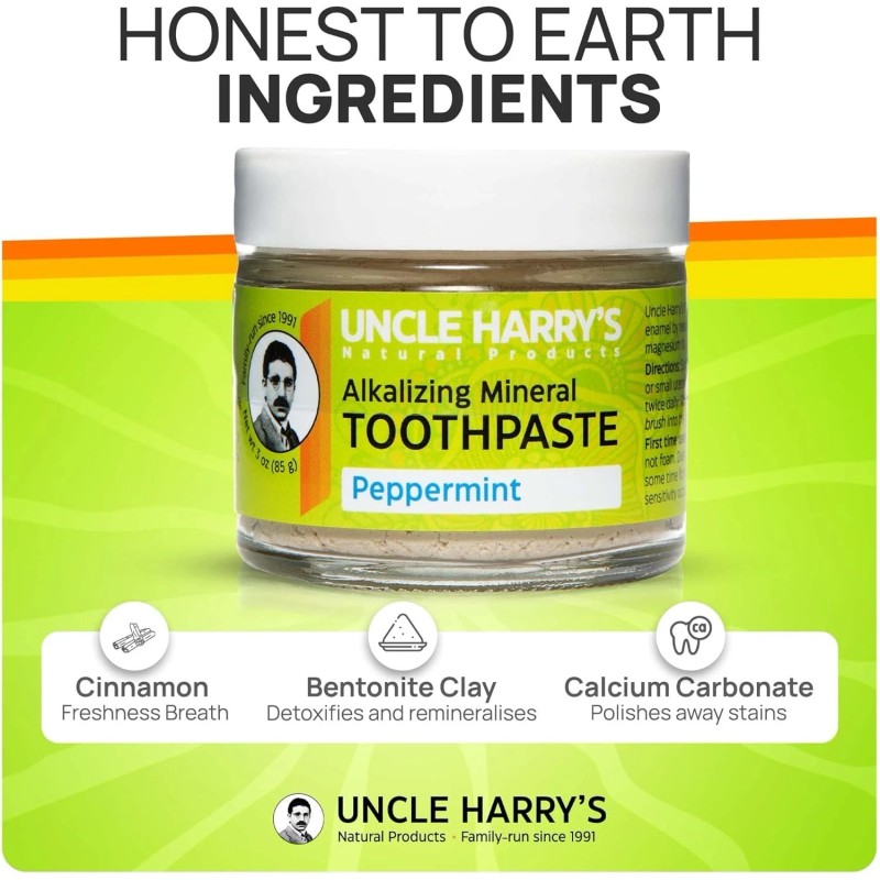 - FRESH BREATH - An all natural toothpaste that eliminates bad breath with fresh peppermint and refreshes your mouth with mineral clays, sea salt, and pure plant essences all day long. Uncle Harry's Natural Tooth Paste Products come packaged in an Earth-friendly, zero waste glass jar that’s been labeled by hand.