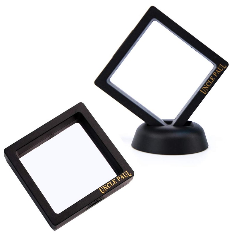 Uncle Paul CS30 Floating Stand for Coins, Jewellery, Medallions, Stones, PVC Frame/PE Display Membrane, Black with Round Base (5 Set), 7 x 7 x 2 cm (2.75 x 2.75 x 0.75 in)