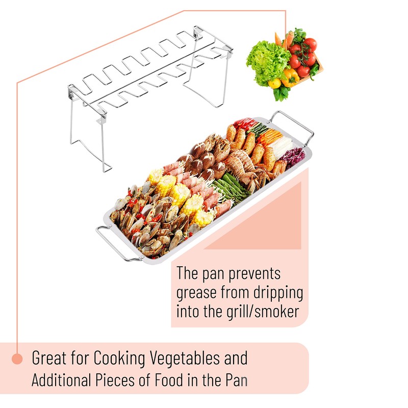 UNCO- Chicken Leg Rack for Grill with Drip Pan, 14 Slots Stainless Steel, Chicken Wing Rack for Smoker, Chicken Drumstick Rack, Chicken Stand for Smoker, Chicken Drumstick Holder, Grill Rack.