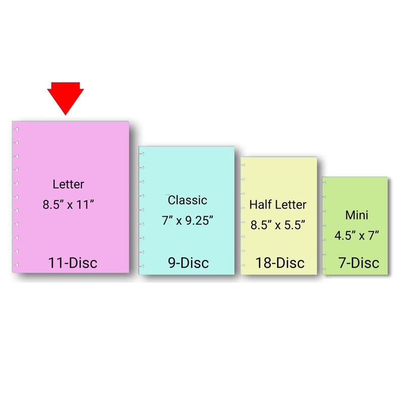 - Fits Big/Letter Size (8.5"x11"), 11-Disc Planners.