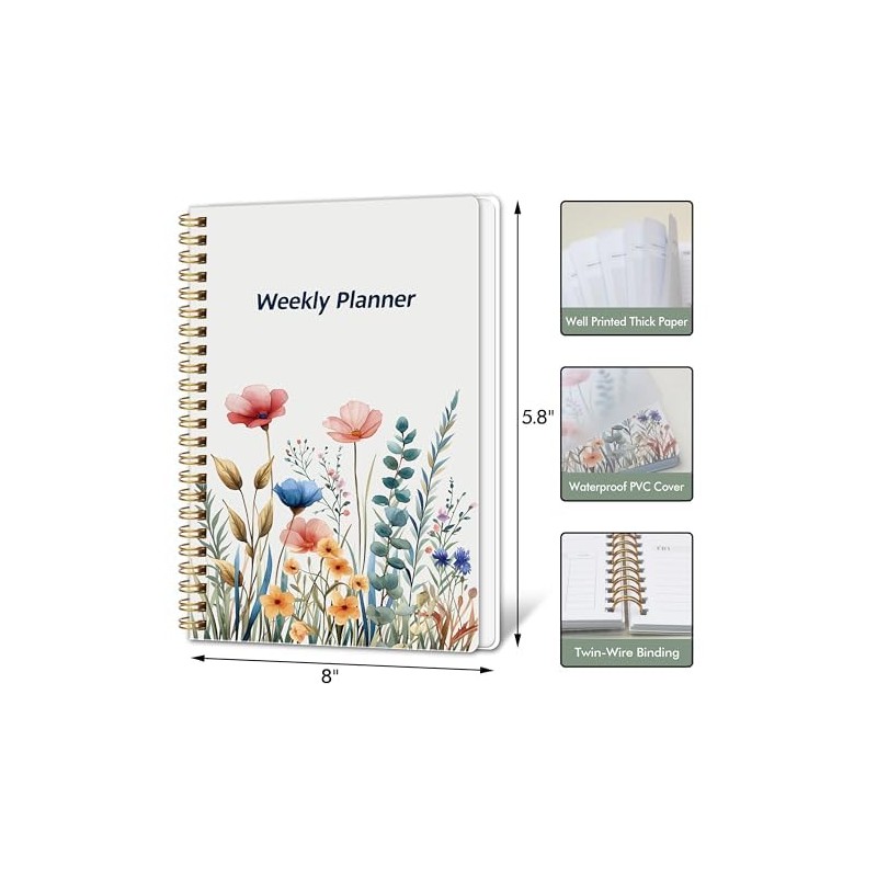 • Popular Perfect Size:The size of this weekly planner is 8.27" x 5.82" for 52 weeks.lightweight, perfect to carry