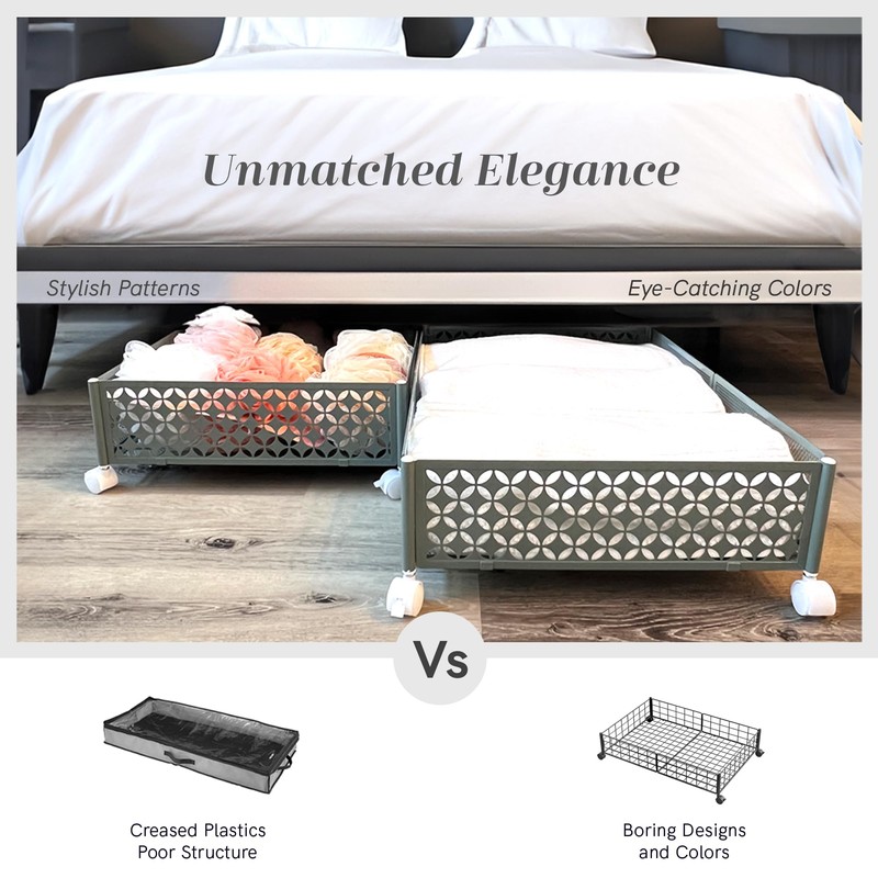 - Transform clutter into organized elegance with our under bed storage solutions. Perfect for bedrooms, apartments, and dormitories, these storage bins with wheels offer unmatched convenience and style.
