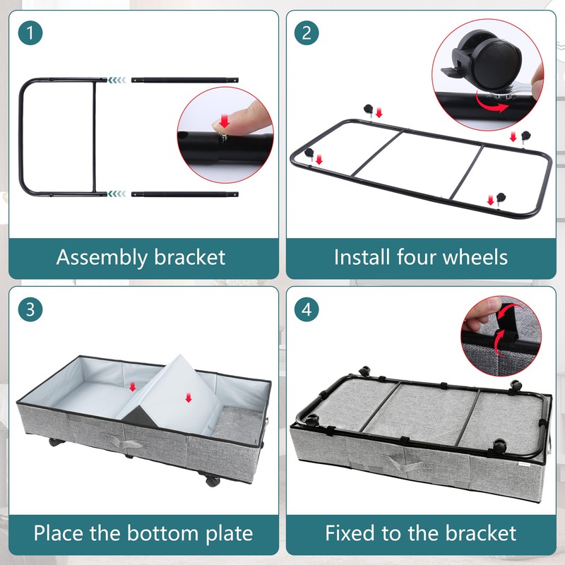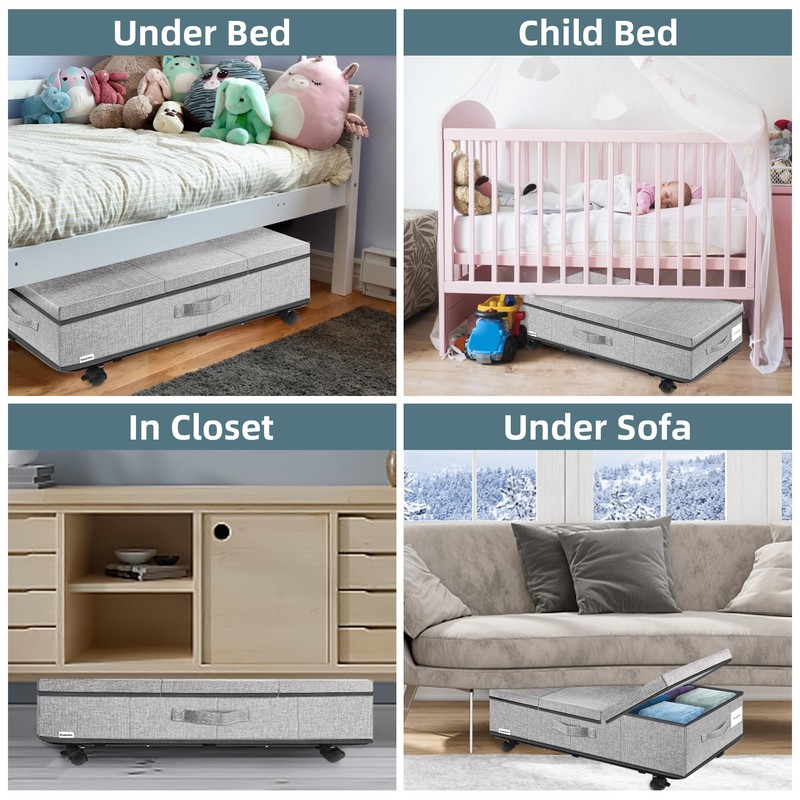 Supowin Under Bed Storage with Wheels, Rolling Underbed Storage Containers with Lids, Under Bed Shoe Storage Bins Organizer with Reinforced Metal Bottom Support and Three Handles
