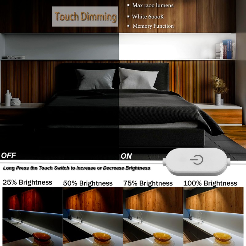 • Power switch: FCC certified 12V power supply, touch switch with dimming! Finger touch and hold for a few seconds to adjust its brightness, quick touch control to turn on and off lights!