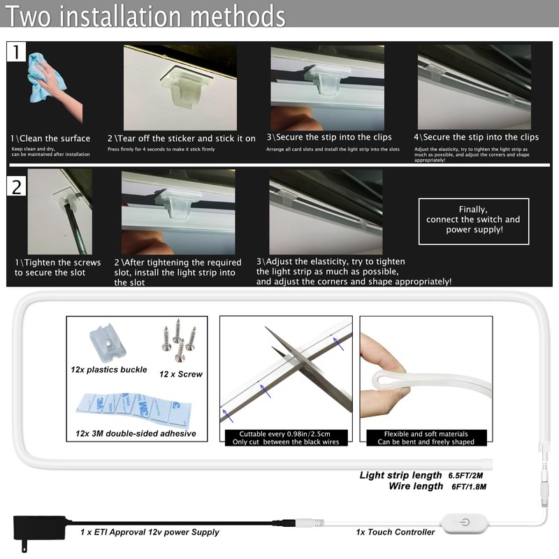• Lighting: The silicone wrapped light beads look soft and not dazzling, with a light color of 6000K. Even if you look directly at the light source, you won't feel dizzy and your lighting environment will look high-end!