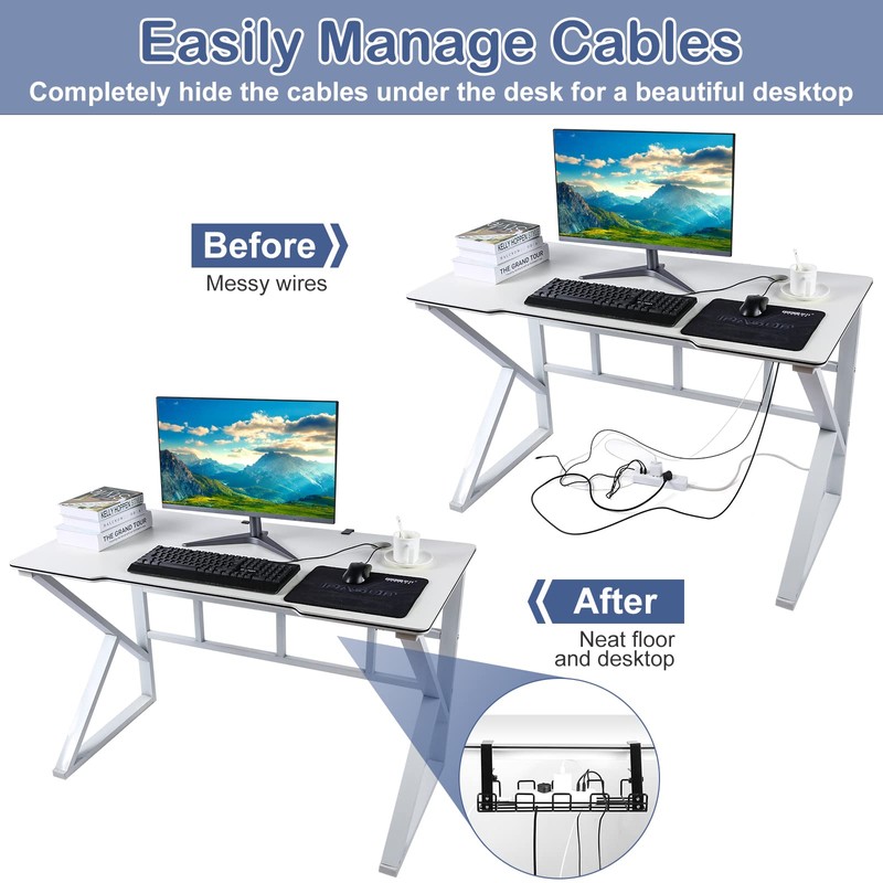 • 【NO DRILLING & EASY to INSTALL】Our under-desk cable management rack can be hung directly on the desk frame instead of damaging your desk like other screw mounts and can change its position to suit your needs. Easy to install, perfect for mounting on any wood, glass or any material.