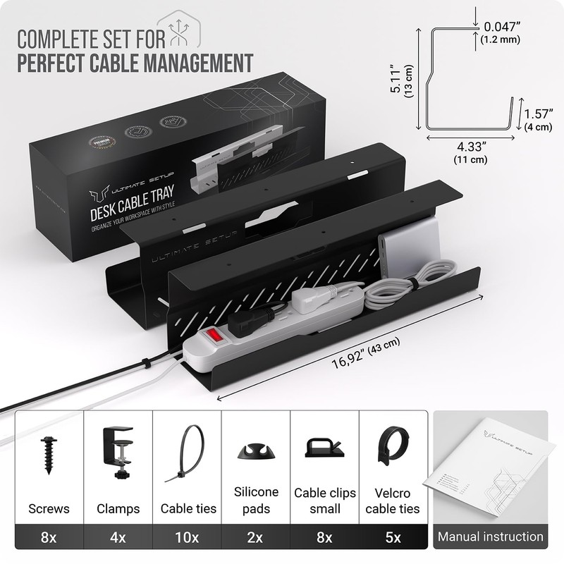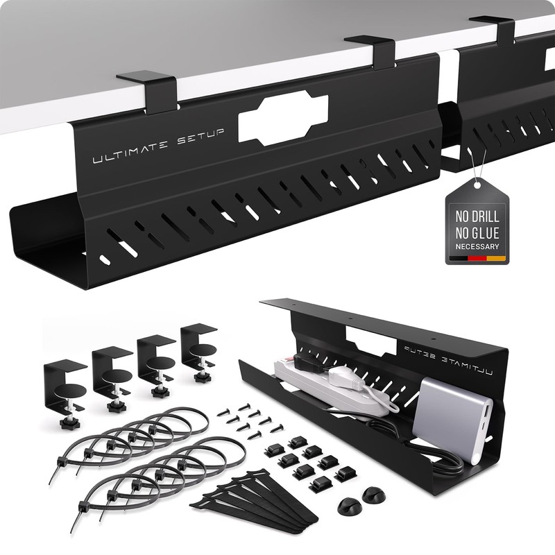- Ultra stable: thanks to a strong metal frame, the cable management tray no drill can support up to 17,6 lb per tray. Hiding your cables has never been this easy! Additional cable sorters and cable clips are included to keep your tangled cables organized