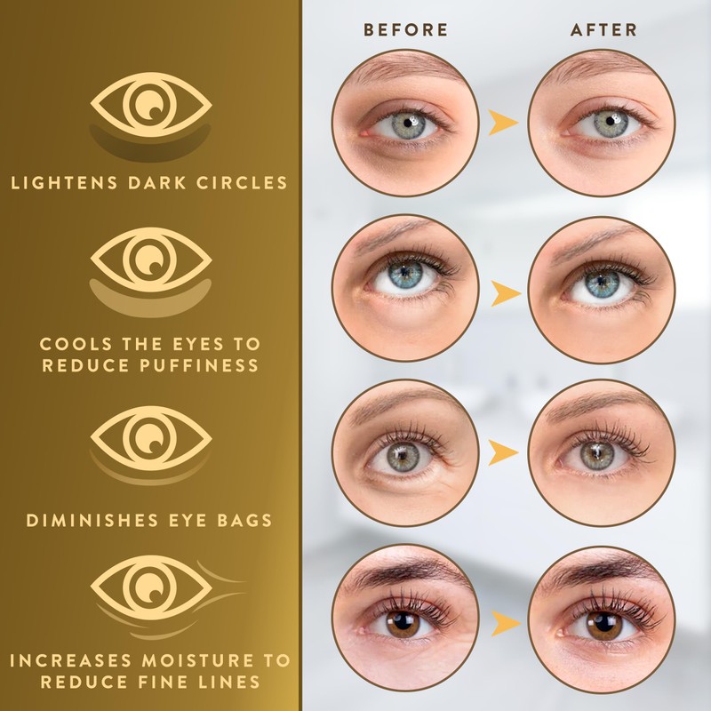 • Decrease Under Eye Bags: Our unique undereye patches cooling eye masks are the ideal eye mask for puffiness reducer. The gold eye patches for dark eye circle remover help you look awake & youthful! Let our hydrating eye patches help you face each day with confidence!