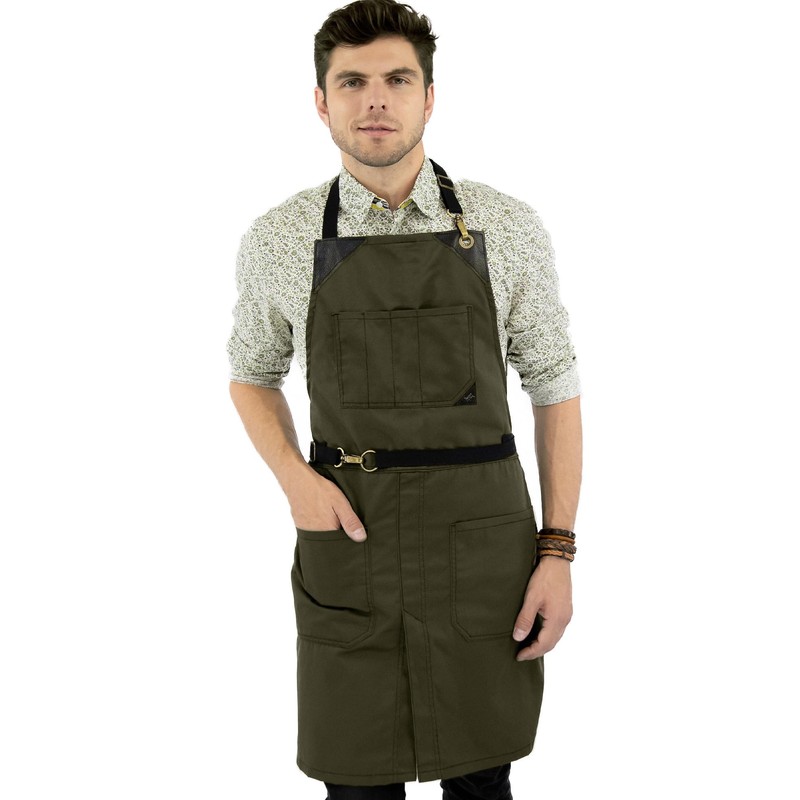 - PROFESSIONAL STYLE – This apron is a true workwear, fitting most bodies and activities, offering you great comfort, durability and functionality. It has clean design, with many utility pockets: easy access phone and pencil pockets on the front chest, and large hand pockets to fit all the tools and accessories that you need. Sleek apron for a professional look, and functional & stylish metal hardware.