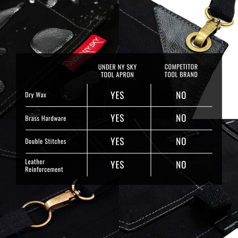 Under NY Sky Tool Black Apron – Heavy-Duty Waxed Canvas, Leather Reinforcement, Extra Pockets – Adjustable for Men and Women – Pro Mechanic, Woodworker, Blacksmith, Plumber, Electrician, Welder Aprons