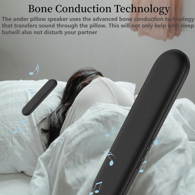 - ✨Bone Conduction Technology✨The silent Bluetooth speaker under the pillow uses advanced bone conduction technology that transfers sound through the pillow. This will not only help your sleep but will also not disturb your partner.