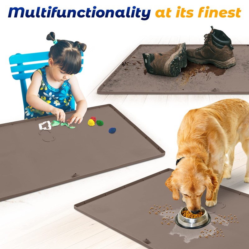 Under Sink Mat 34" x 22" Silicone, Under Sink Liner, Under Kitchen Sink Mats, Waterproof & Flexible Sink Mats for Kitchen and Bathroom - Brown