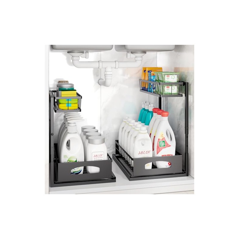 - MULTI-PURPOSE: Preventing water buildup and easy to clean, this cabinet organizer offers plenty of space for various items. Perfect for under kitchen sink storage, bathroom storage, pantry storage, kitchen spice storage, and desktop organizers, it keeps your space neat and efficient.