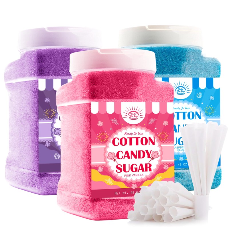 - Under the Sun Products' Cotton Candy Floss Sugar Package offers a tantalizing assortment of Pink Vanilla and Blue Raspberry flavors, providing a delightful taste experience for cotton candy enthusiasts. Each 3-pound pack containing both flavors, it ensures versatility and enjoyment for diverse preferences.