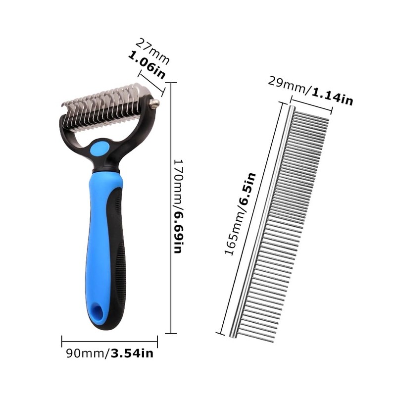 - [Best Brush for Long Hair Dogs and Cats]: 9 Teeth + 17 Teeth - Use the 9 tooth side first for stubborn clumps and tangles, and finally use the 17 tooth side for grooming and detangling. This allows for faster and more professional knot removal and grooming results.