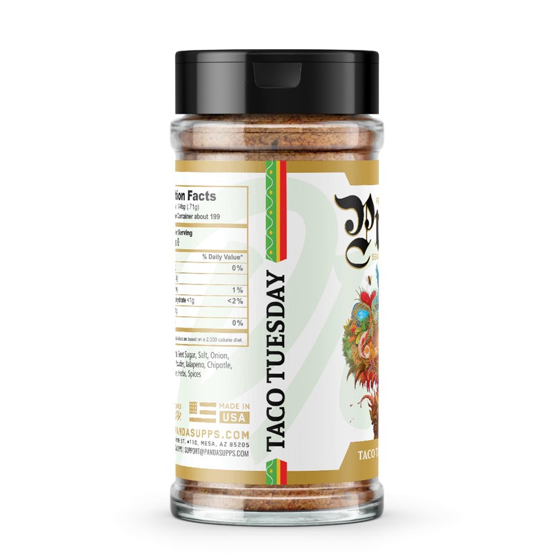 - Taco Tuesday - A zesty blend designed to bring the vibrant flavors of Mexico to your kitchen. Crafted with a carefully curated mix of spices, our seasoning is a fiesta of taste that transforms any dish into a festive celebration.