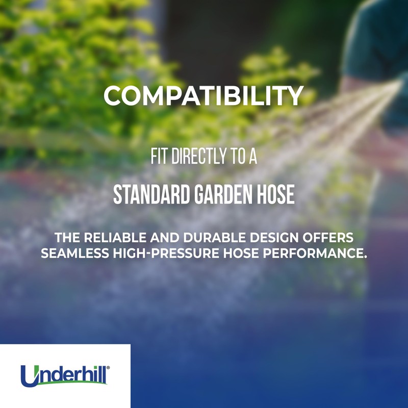 • MULTIPLE USES – Our jet nozzle for garden hose is ideal for watering large areas, hydroseeding, and pre-game skins watering. Suitable for professional use on golfing greens, landscapes, and nurseries. Underhill is a USA based corporation and provides around the clock customer support.