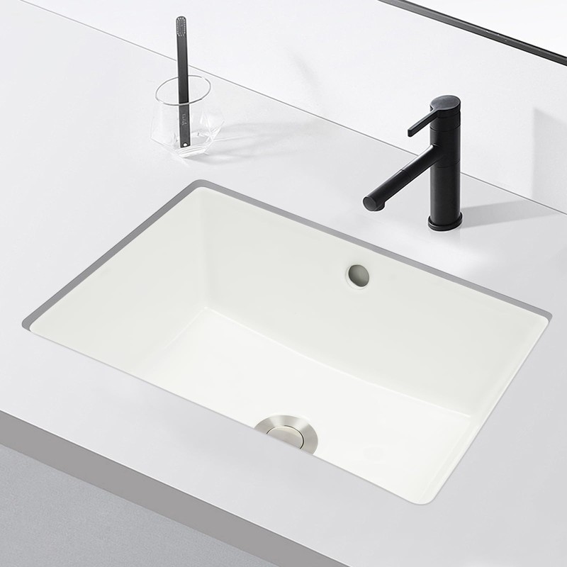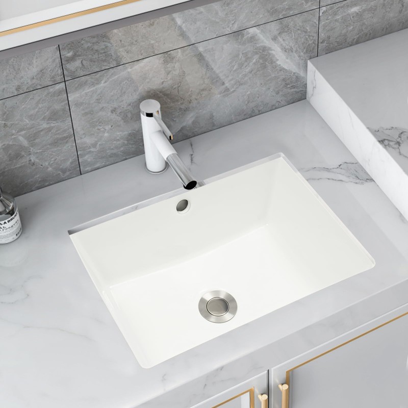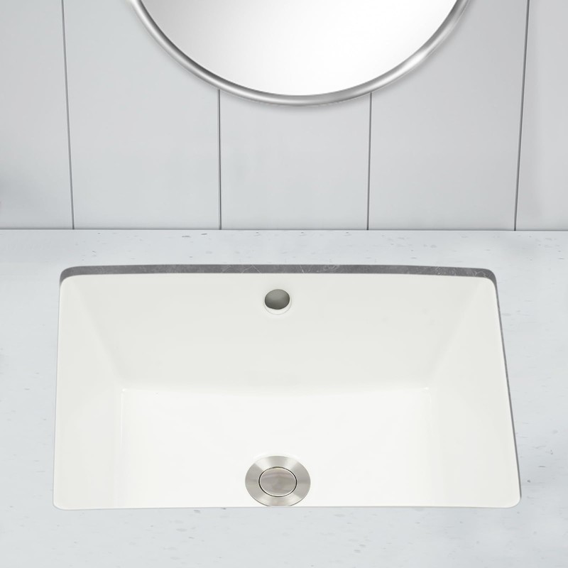 - This undermount sink is made of high-quality material that is sturdy and durable. The versatile white-colored exterior and smooth lines match well with a variety of home decor styles. The large sink size provides you with plenty of space for cleaning. Have it and give your bathroom a new look!