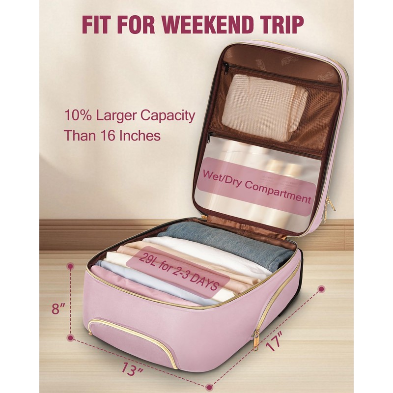 - LIGHTWEIGHT TRAVEL STORAGE: The travel suitcase is ideal for weekend travel or business trips, and it comes with a packing cube for toiletries organization. The women's luggage has two main zippered compartments, one of which is padded for a laptop, and multiple convenient pockets for your passport, travel documents, etc.