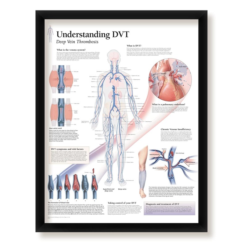Understanding DVT Deep Vein Thrombosis Framed Medical Educational Informational Poster Diagram Doctors Office School Classroom 22x28 Inches