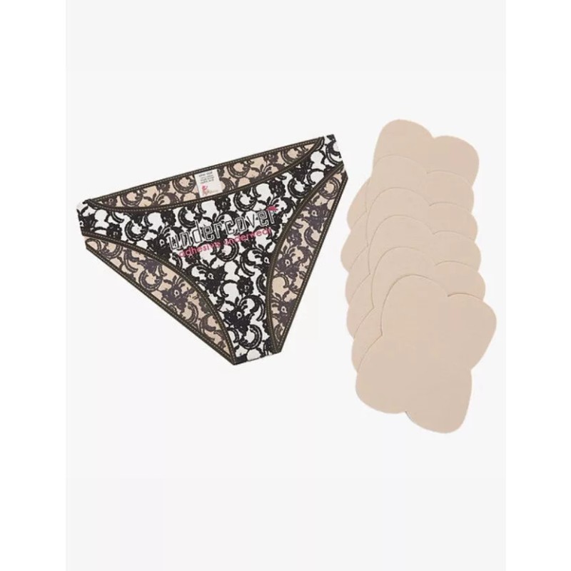 The Under cover Adhesive Underwear is the only tried and true way to avoid panty lines by allowing you to ditch the panties but keep the protection. Simply peel off the backing, stick this ingenious underwear alternative right to your pants or shorts. UnderCover adhesive underwear is made of hygienic soft, brushed 100 percent cotton and comes in beige discretion. The heart shape is designed to fit to your body while adhering well to Pants.