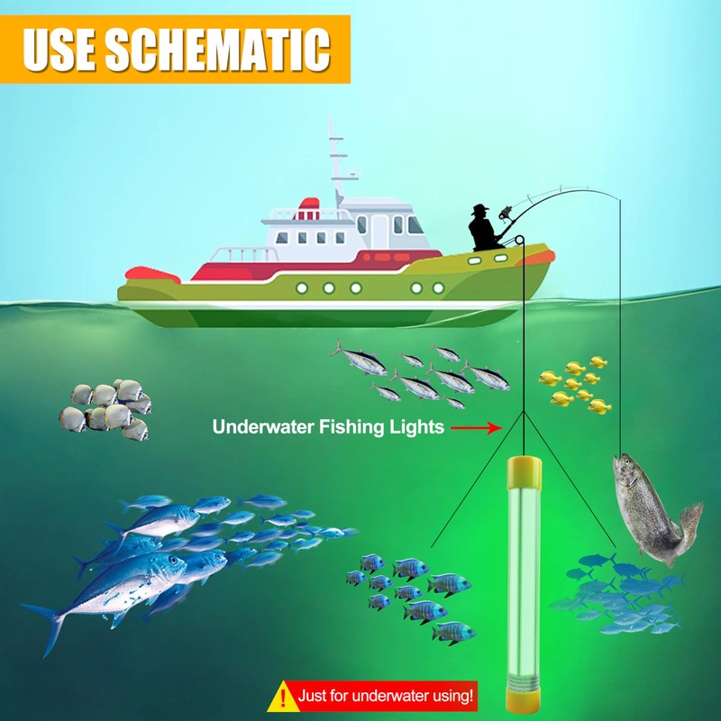 - 【IP68 WATERPROOF】Underwater LED fishing light built-in special waterproof sealants on the outside of the lamp. superior IP68 waterproof ability prevent circuit board rusting and burned out,operating is safe. This fish attracting light can be placed in freshwater or saltwater.No more fear of seawater corrosion.