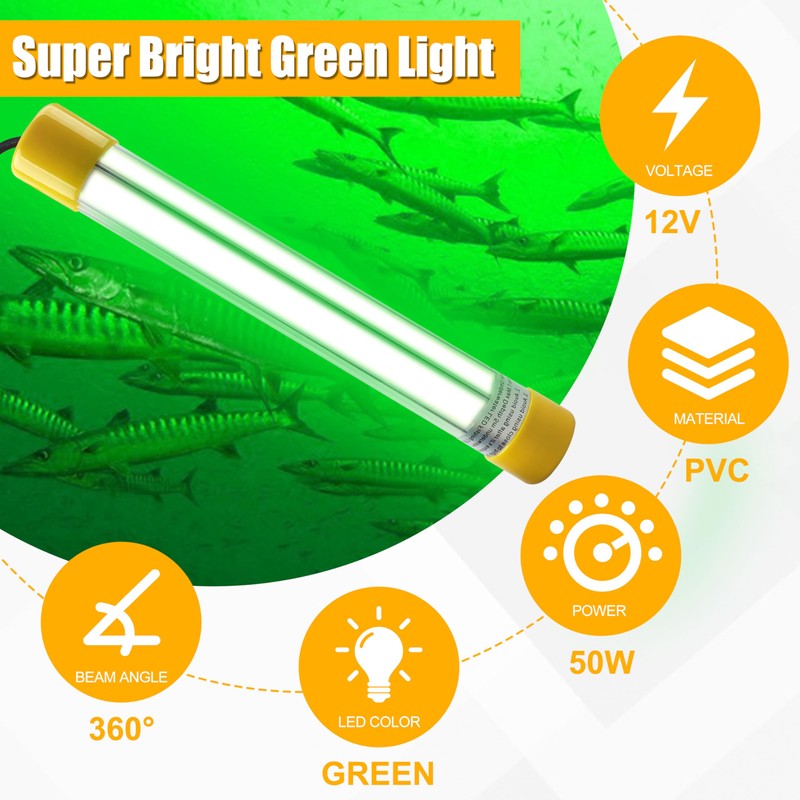 - 【SUPER BRIGHT FISHING LIGHT】50W Underwater fishing light features 30000 lumens brightness,5 Sided LED Fishing Light(360 degree view),wider and higher brightness attracts more fishes.12.2in in length with 16.5ft power cord,penetrate up to 50m through water to attract marine and river fish at night.