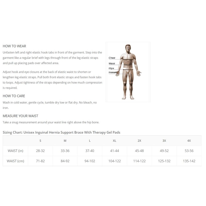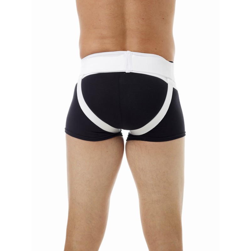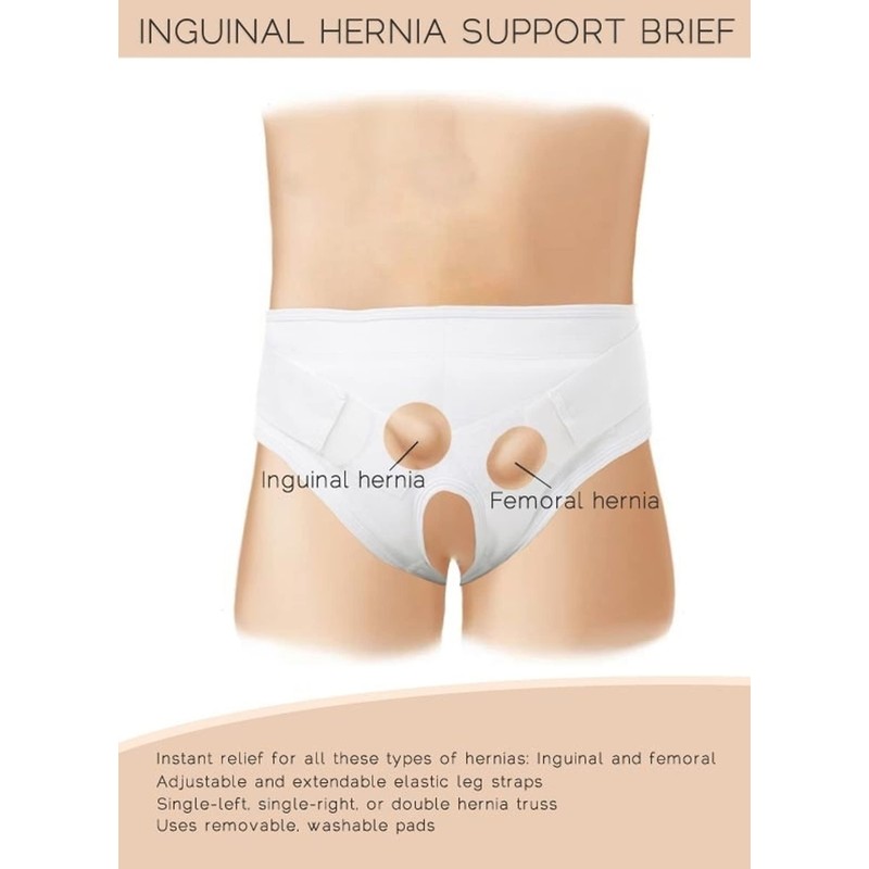- INGUINAL HERNIA SUPPORT FOR MEN AND WOMEN - Provides strong and gentle support for the groin area with adjustable straps that fasten with Velcro Built in pads are removable and washable. Made in the USA.