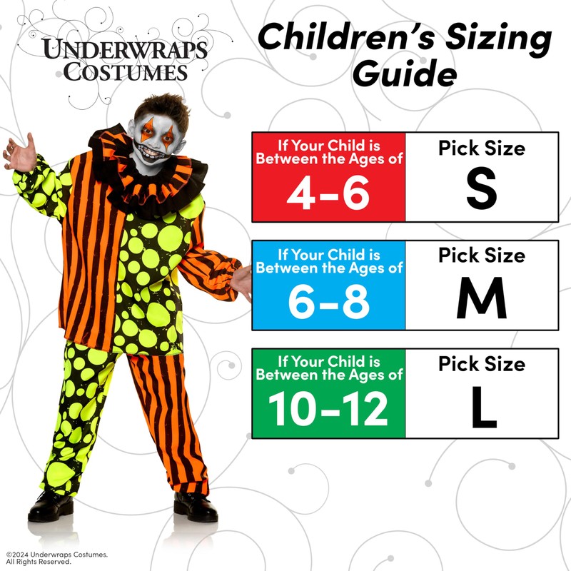 - 🎃 INCLUDES: Package Includes Printed Suit Jacket, Suit Pants & Elastic Attached Tie! Makeup and Shoes Not Included. Click the Shop Link Above for Additional Clown Shoes and Accessories!