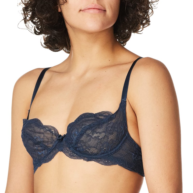Undies.com Women's Microfiber Lace Unlined Underwire Balconette Bra, Black Iris, 36B