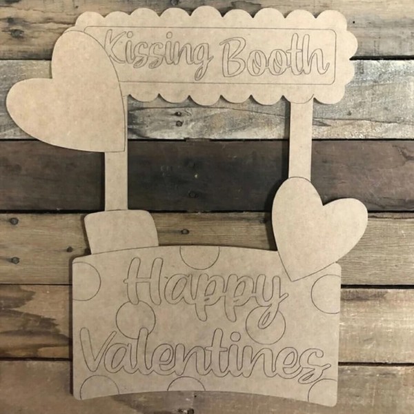 Unfinished DIY Wooden Valentine's Day Kissing Booth Cutout - Paint Your own Spring Sign (16)