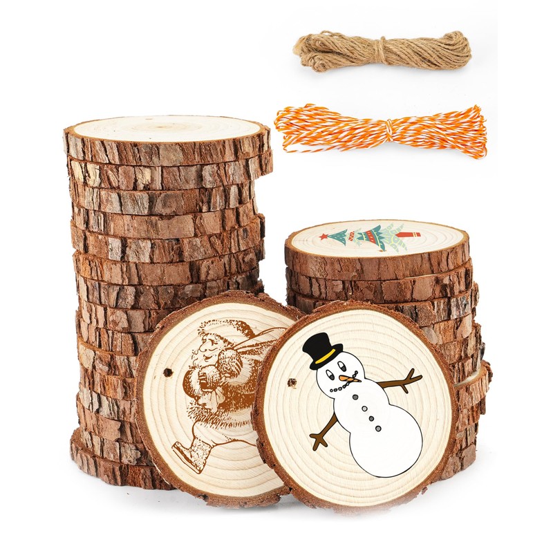 - No Easy Cracks - Quality unfinished natural wood slices circles with bark. Well made, sturdy, and has a nice texture. Perfect for Christmas wooden crafts decorations, wooden wedding decorations, wooden coasters, bottle & candle base, photo props, name tags, gift tags, gifts for children, gift labels, home decorations, etc.