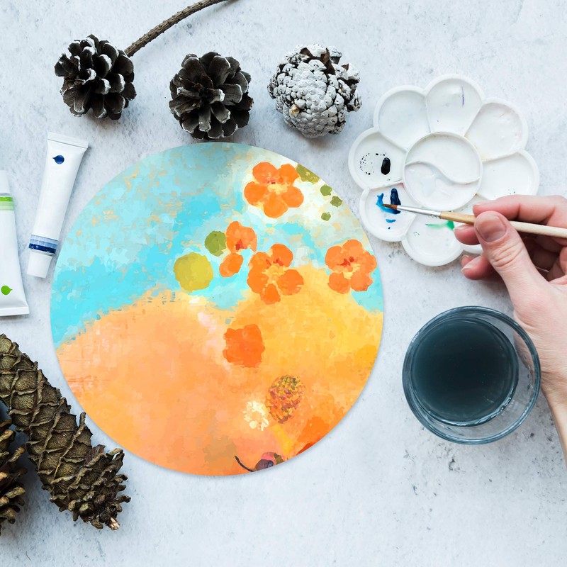 - A blank round wood disc will be the canvas for your next creation. Embellish them with ribbons, beads, paper, yarn or other pieces of wood. Enjoy that feeling of fulfilment as you proudly hang the finished piece on your door or home walls.