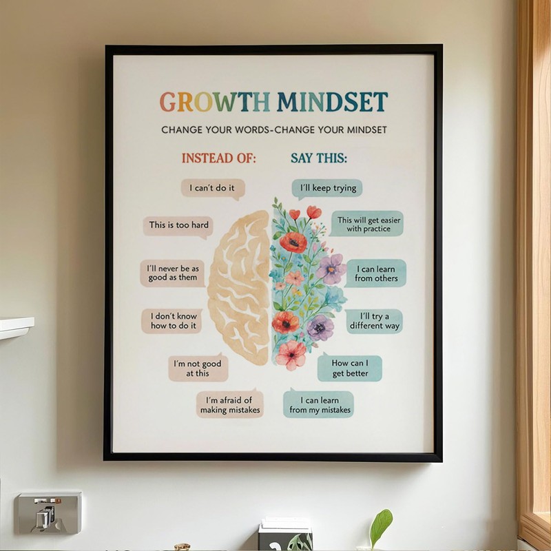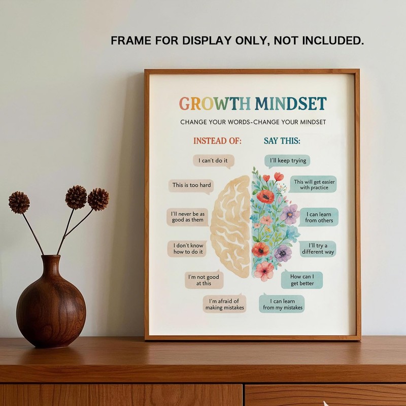 - 【Versatile Use Scenarios】: This Growth Mindset Poster thrives in classrooms as inspiring decor, in counselor therapy offices as a tool for positive reinforcement, and at home as a daily motivator. Its calming colors and empowering message make it perfect for anyone seeking to challenge negative thoughts and foster growth.