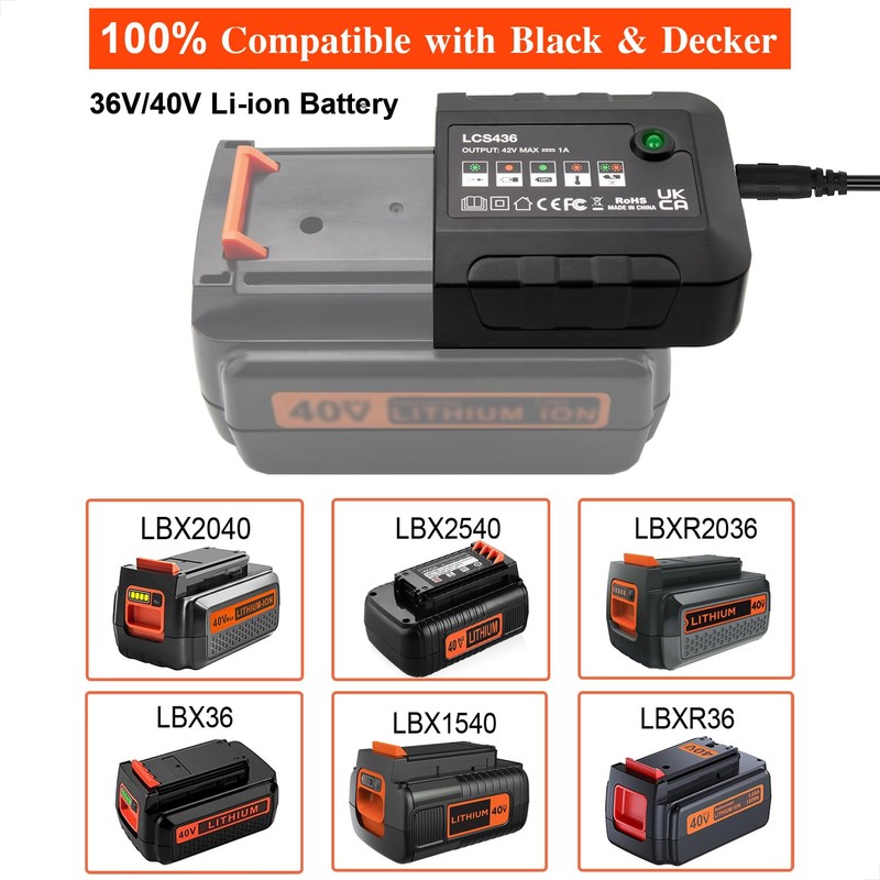 - Best replacement: is the best replacement for Black+Decker 40V battery charger LCS36 LCS40. Compatible with Black & Decker 36V 40V lithium battery LBXR36 LBX36 LBXR2036 LST540 LCS1240 LBX1540 LST136W LBX2040 LBX2540 charging.