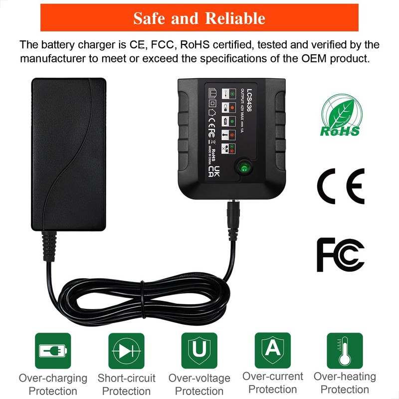 - Fast charger: Through 100V-240V voltage input, the effect of fast charging is achieved. Quickly charge the BLACK+DECKER 36v 40v Max lithium battery within two hours.Help you get your work done efficiently.