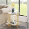 UNHO 2 Tier Sofa Side Table Square Sintered Stone End Desk Home Furniture Living Room