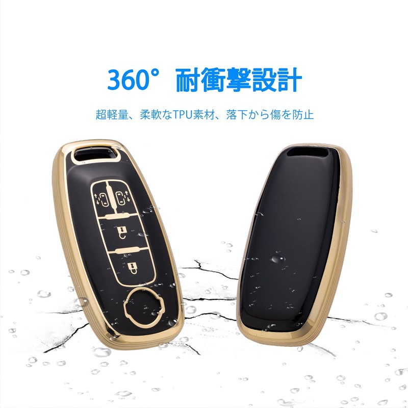 [Unhoke] New Serena Key Case, C28 Series, New Lukes, ProPilot e-Power, Smart Key Cover, Sliding Doors on Both Sides, Luxury TPU, 4 Buttons, Gold Black