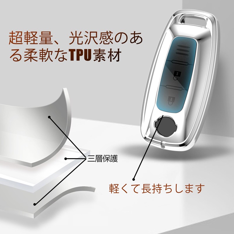 [Unhoke] New Serena Key Case, C28 X-Trail Key Cover, Aria, Sakura, Smart Key Case, TPU, Good Texture, Luxury, Silver