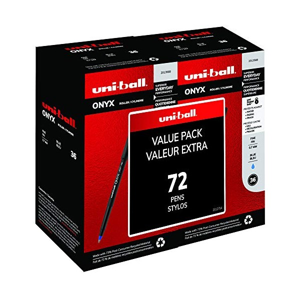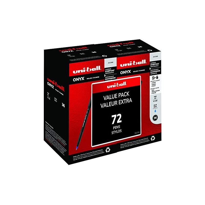 • Includes: 72 blue Uni-Ball roller pens, 0.7mm fine point