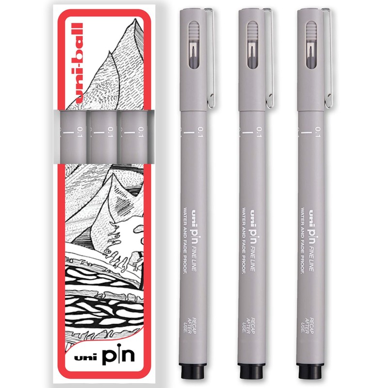 uni-ball PIN Fineliners | Fine Tipped Writing Pens | Water & Fade Resistant Ink | Ideal for Sketching, Scrapbooking, Outlining, Art, Technical Drawing | In Gift Box (Light Grey - 0.1mm, 3)