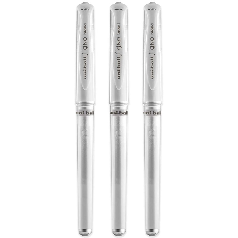 uni-ball Signo Pen - UM-153 Broad Metallic Gel Ink Rollerball - Metal 1.0mm Tip Nib - Rubber Grip - In Gift Box (Pack of 3, White)